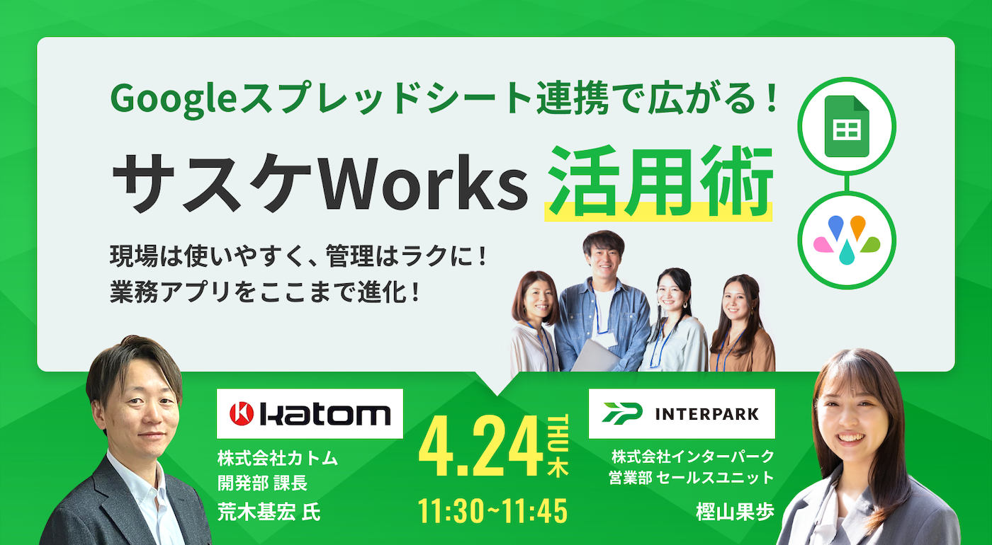 そこで今回は、『GoogleスプレッドシートとサスケWorksの連携』をテーマに、実際にどういったことができるかをご紹介します。