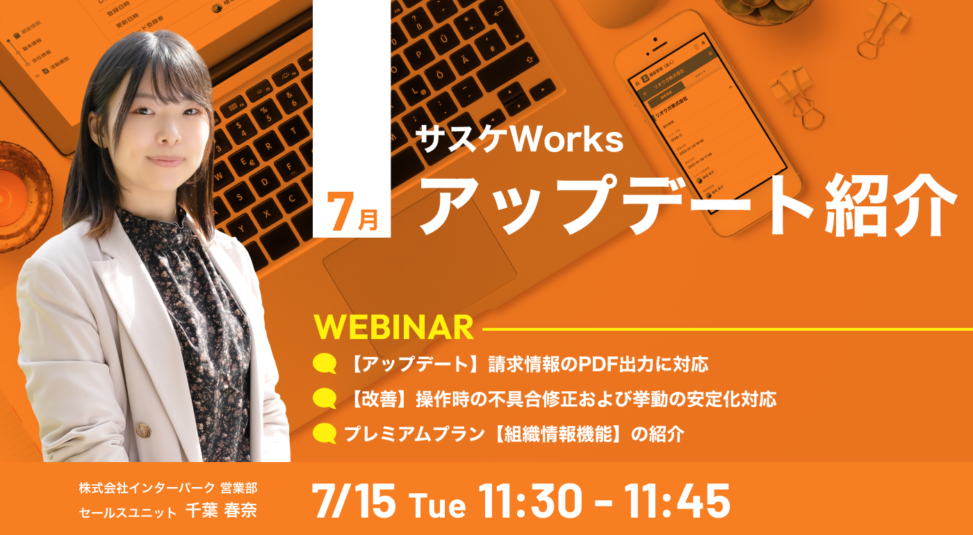 7月15日(火)サスケWorks アップデート紹介ウェビナー